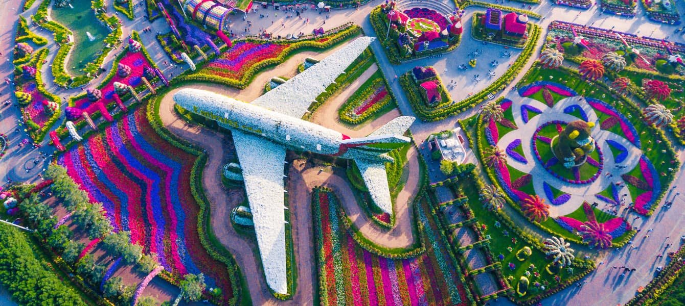 Journey to the botanical paradise of Dubai's Miracle Garden, which encompasses 72,000 square meters of breathtaking landscapes. Opened in 2013 with the aim of creating a lush oasis in the middle of the desert, this garden has become one of Dubai's most visited attractions, drawing millions of visitors each year. Upon entering, stroll through the carefully manicured themed gardens and along its pathways, and admire its unique structures and fountains, all magnificently adorned with a vibrant array of flowers and plants. With over 100 million flowers of more than 70 rare, exotic and native species, the garden is also recognized by the Guinness Book of World Records for its stunning floral wall, the largest of its kind in the world.