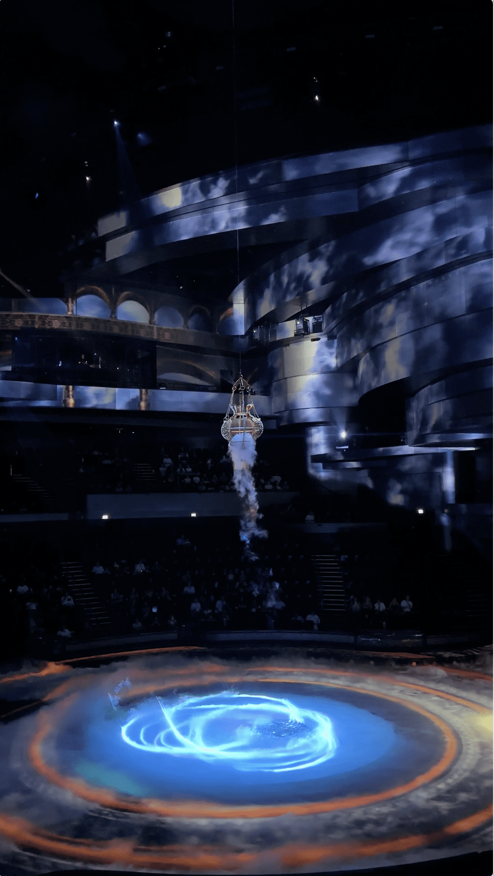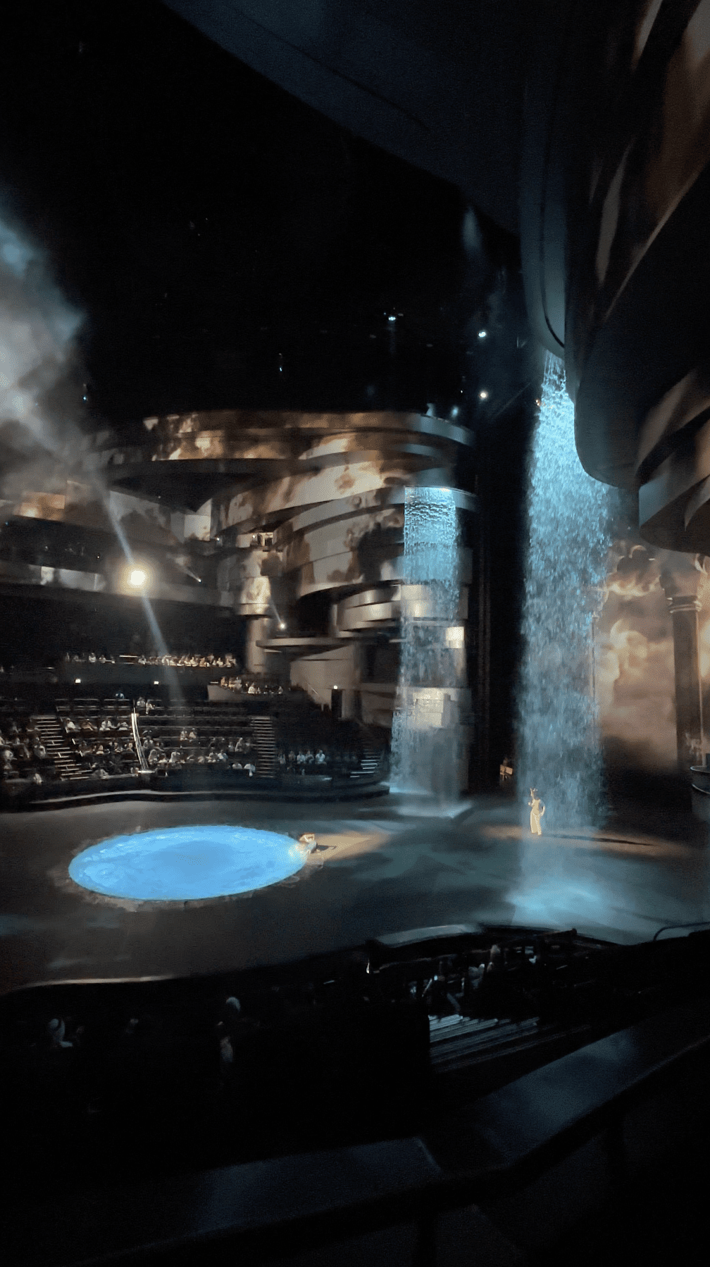 Nuestros representantes te recogerán en tu hotel en nuestros vehículos si eliges la opción de transporte. Una vez dentro, te sorprenderá la piscina en el escenario (escenario acuático), que utiliza 2,7 millones de litros de agua de forma innovadora en cada acto y cuenta con 1300 asientos ocupados por el público en una disposición circular. Esta disposición circular permite que el público disfrute de las actuaciones en vivo desde todos los ángulos. Puedes elegir tus entradas al reservar: bronce, plata, oro y VIP.